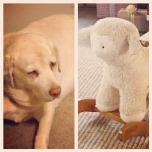 It’s fun shopping for gender neutral items. We’ve decided to go with a lamb theme in Bean’s room. I was picking things out for our registry online… when suddenly realized our dog, Amelia, looks like a lamb! I hope this doesn’t cause mass confusion for Bean in the near future.