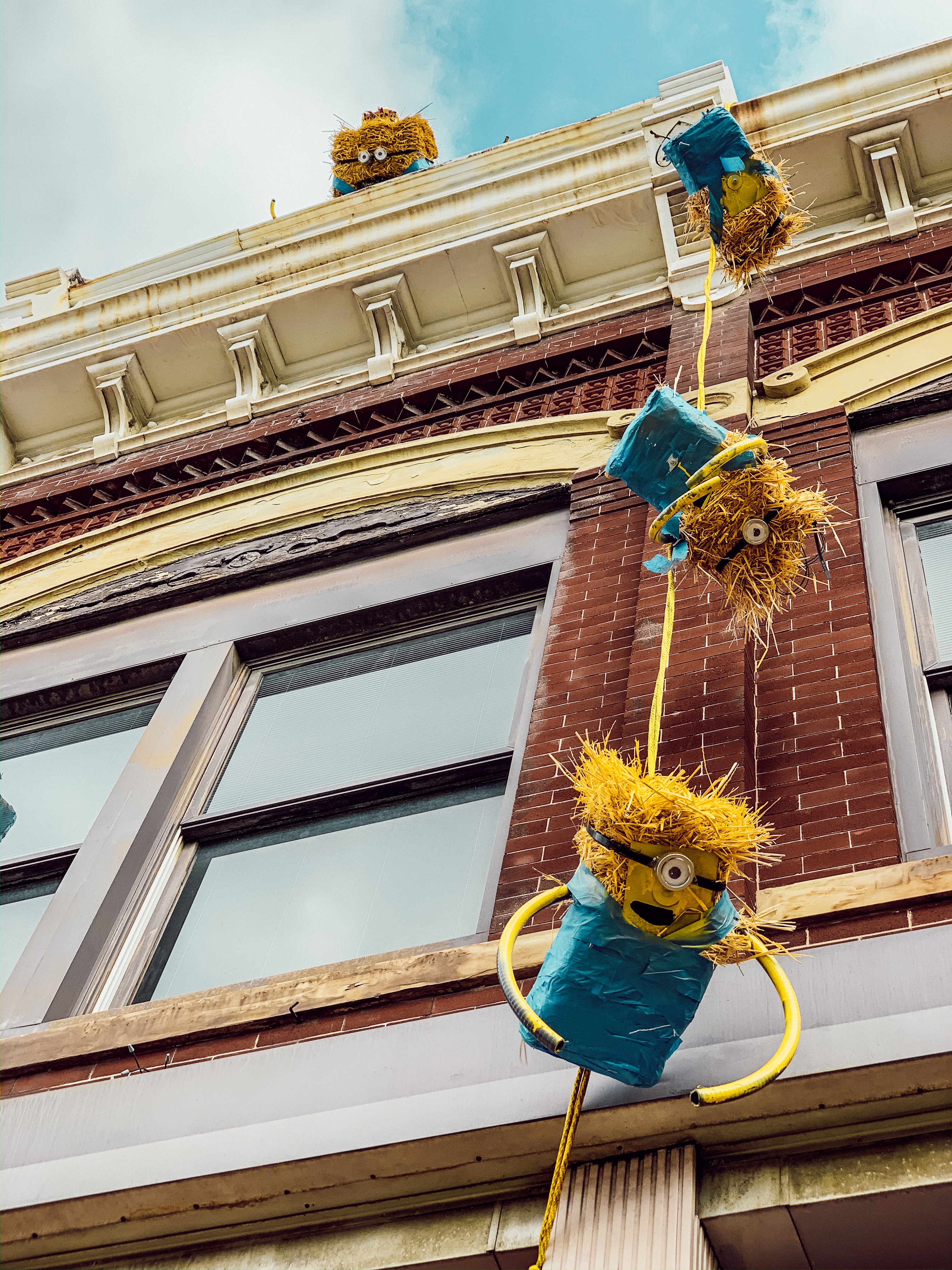 While we were downtown, we took a stroll around the main streets to check out the scarecrows, the kids LOVED this part of the day. They counted 30 some scarecrows all decorated for each participating business. Their favorite one was the minions climbing a building to get to King Bob. They laughed and laughed at the sight.