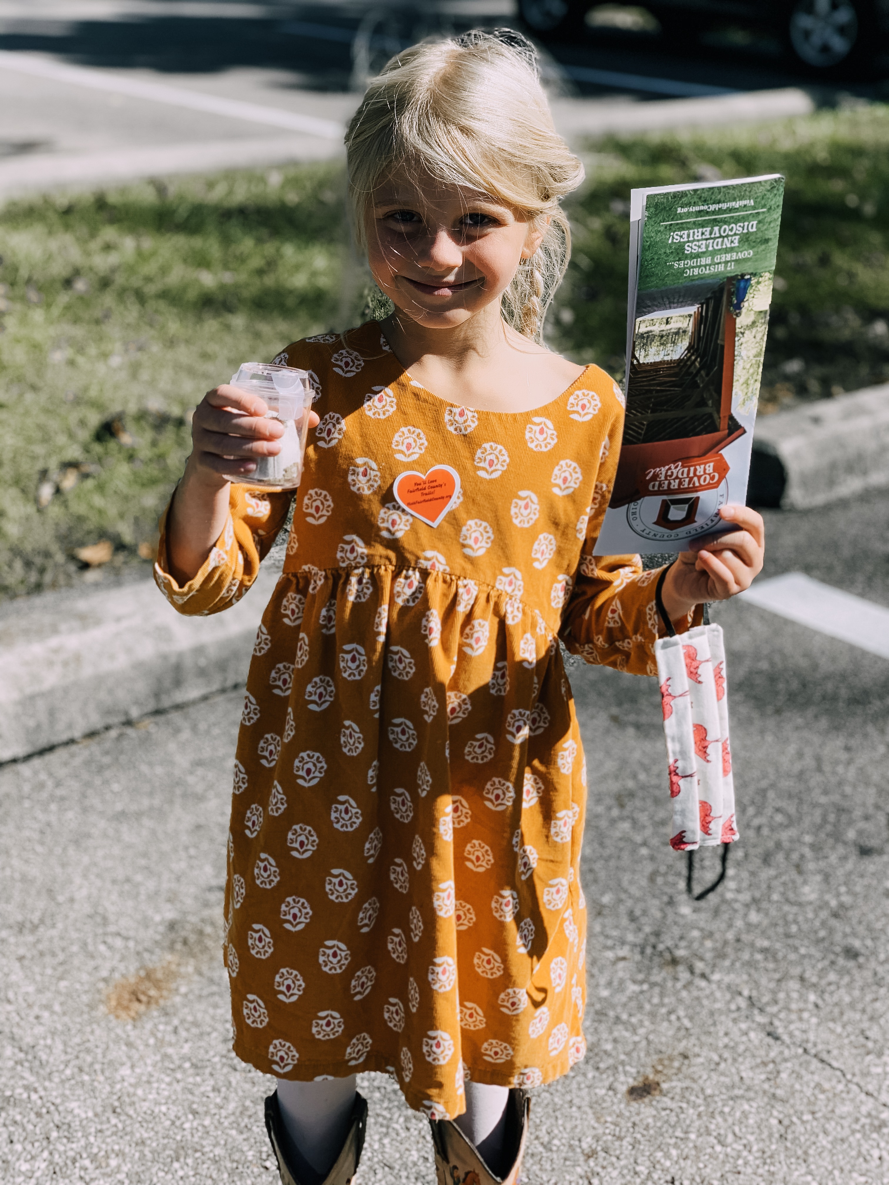 After our visit with Trina, Fran joined us again to give the kids a quick kid-friendly tour of a nearby covered bridge. We learned they were covered because they are made of wood and the wood needed to be protected from the weather. A truly beautiful sight to see!