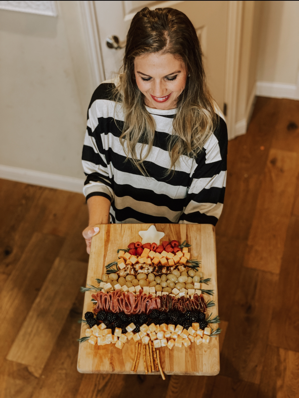 this past weekend, a high school friend invited us over for dinner at her fiancé’s house and I couldn’t pass up the opportunity to try my Christmas Tree Charcuterie Board! I’ve been waiting all season for an excuse to make one.