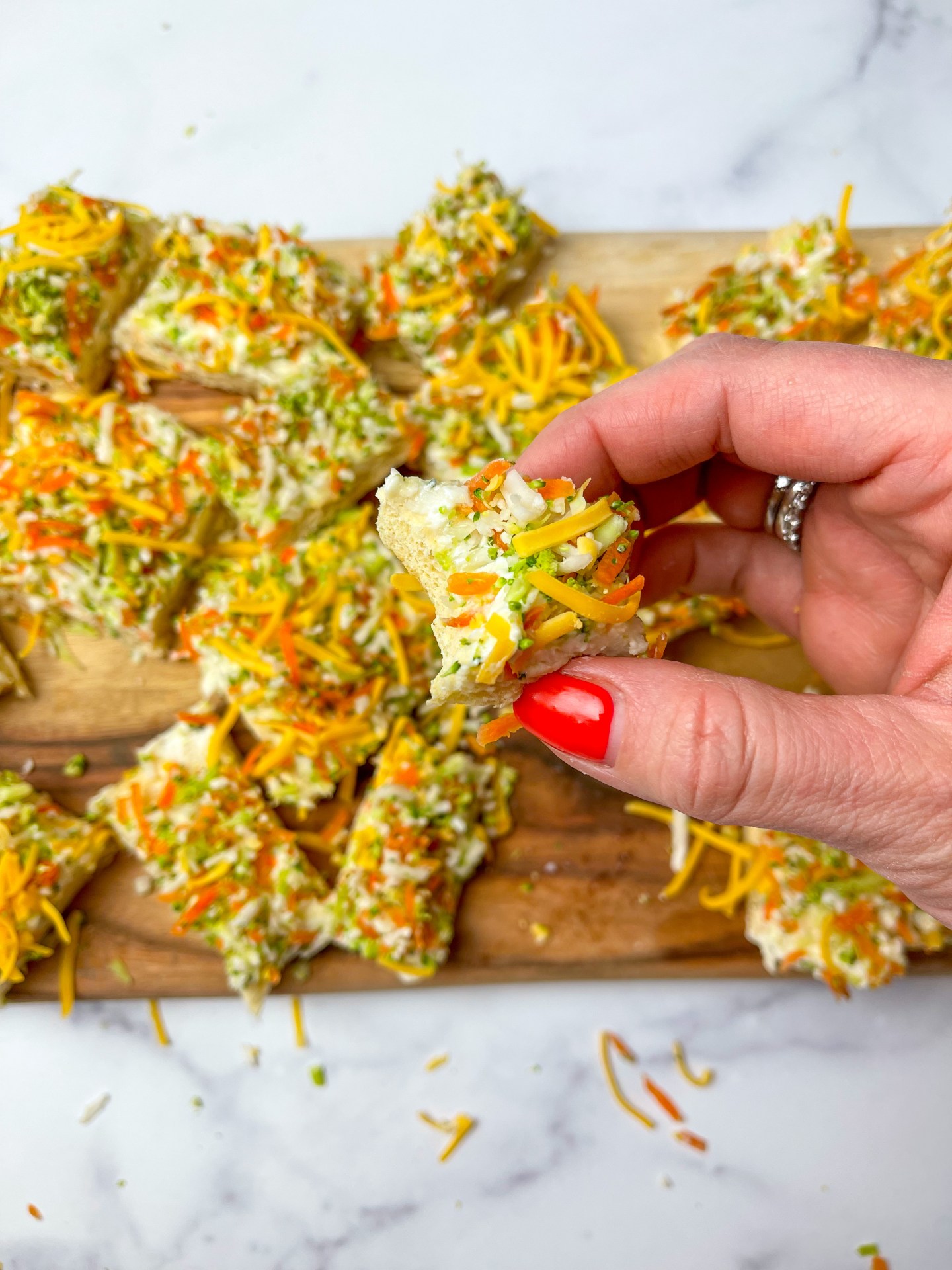 This recipe is super simple and you can make it the day before, or even prep all of the ingredients early and assemble closer to the time your guests arrive if you’re hosting a party soon. Serve it as an appetizer, side dish, or part of your kids dinner or lunch. Very kid-friendly, just don’t tell them it has vegetables in it.
