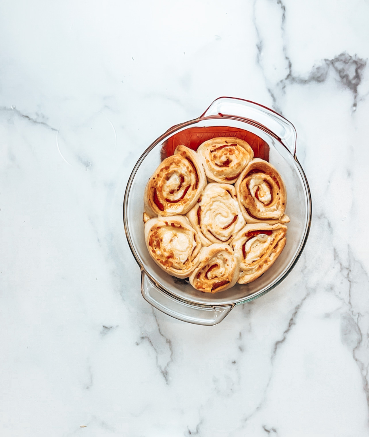 - Bake for 20 minutes or until the rolls are slightly brown and the cheese is melted
