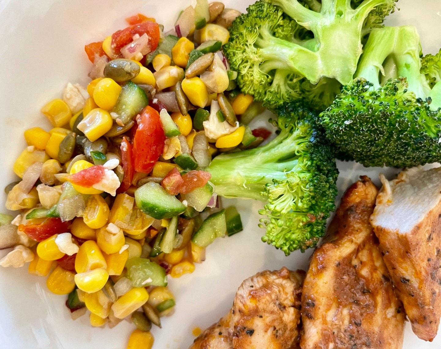 You can prepare this dish earlier in the day or even the night before and hold off on the avocado until you serve it because it will brown. Also, you can use canned corn to cut down on time or if it’s not in season where you live.