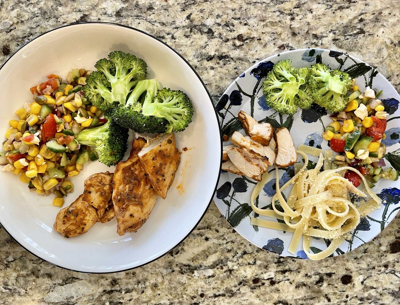 I started out baking 1 lb. of chicken, but they are so obsessed with it, I’ve had to double the recipe and there are never leftovers.
